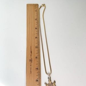Vintage Napier Gold Tone Sea Turtle Necklace Metal Wire Wrap Pendant 15" DR2