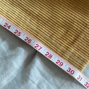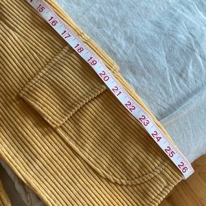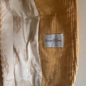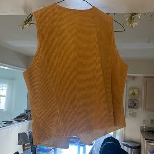 Vintage golden three-piece corduroy suit, lined with leather buttons and elbow patches. See photos for measurements. EUC!