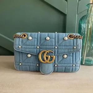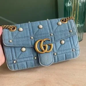 ❌SOLD❌Gucci GG Marmont Denim Pearl Small Flap Bag