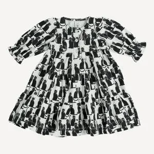 NWT Kate Quinn Long Sleeve Prairie Dress Black Cat Organic Cotton 3-6m