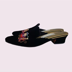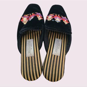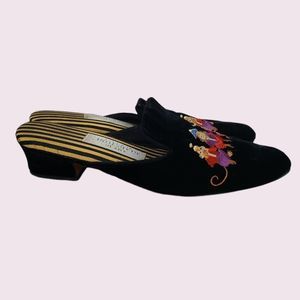 Amy Jo Gladstone Black Velvet Mule Handmade Embroidered Monkeys