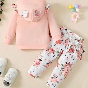 Floral Heart Hooded Long Sleeve w/ Ruffle Bottom Pants