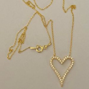 18k yellow gold plating over 925 sterling silver clear cubic zirconia stone charm long heart love necklace in free gift box