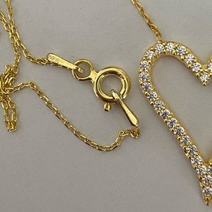 💖925 Silver necklace heart love cz stones 18k yellow gold plated