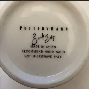 Pottery Barn SANTA BABY 10oz Footed Mug Porcelain Japan Christmas Bring Me a Convertible, Too Light