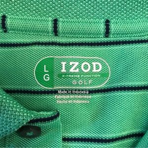 Izod Polo Shirt Men Size L Green Stripe X Treme Function Golf Shirt Short Sleeve