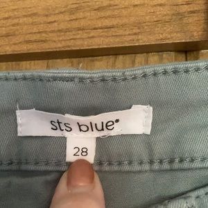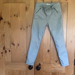 Mint colored skinny leg jeans pockets front and back, button fly, has stretch. 28” inseam