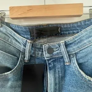 Size 26 light wash slim fit with slight flare at hem. Never worn new with tags