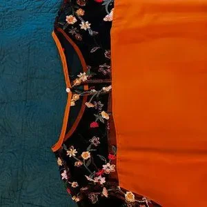 Beautiful Embroidered Floral on Lace, Gold Bodice, Tie-back Sleeves