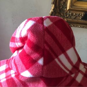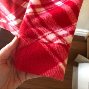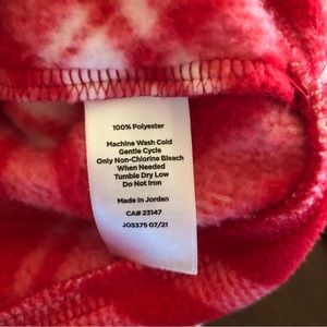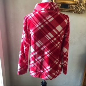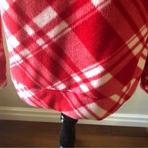 Red and white patterned long sleeve top. Feels very soft and comfortable with a loose turtleneck style. 100% polyester
