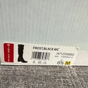 NWT black buckle heeled knee high leather boots. In great condition, never worn. Comes with box. Womens size 6.5