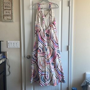 Kate Spade ♠️ V-neck adjustable dress with built in slip. The back is a low-back zipper. It’s cream colored with pink, purple, grey, black & orange colors. The tag is struck out as to prevent illegal returns. It’s a size 10 & is true to size. I wore one time for just a few minutes. Any used items are recommended for dry cleaning. Any questions feel free to message me anytime xo Julia