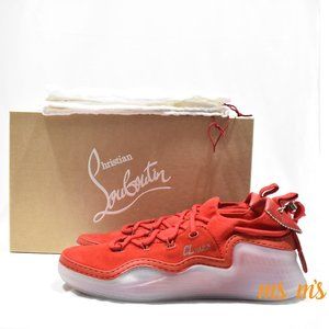 NIB Christian Louboutin Donna Clear Sole Red Suede Low Top Sneakers