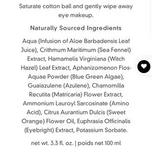 An extremely mild liquid of sea fennel and chamomile, which gently and effectively removes all traces of eye makeup without irritating the delicate eye area. Eyebright extract soothes tired, sore eyes and diffuses redness and puffiness.