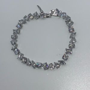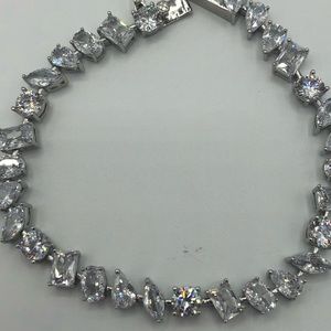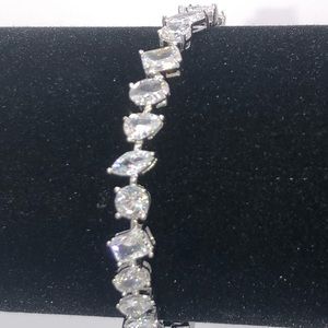 This delicate & modern take on a tennis bracelet will turn headsM made up of solitaire, marquis, oval & radiant diamond simulant stones, each stone is approx 0.48tcw totaling 14.88 carats