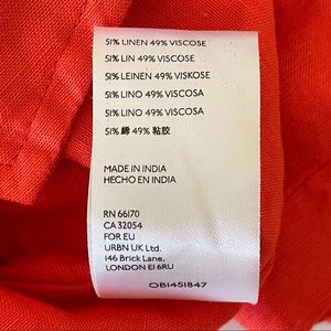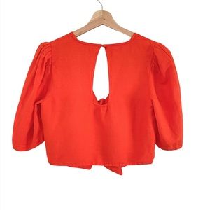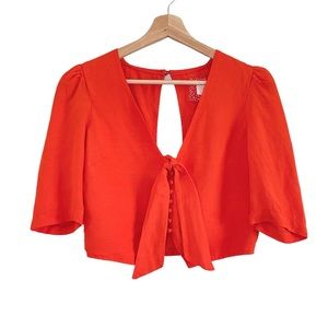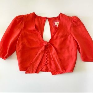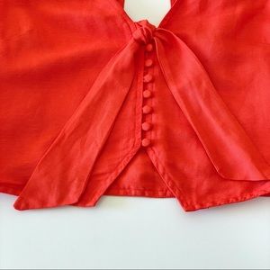 NWT Anthropologie Maeve Short Sleeve Tie-Front Linen Blend Blouse Orange 4