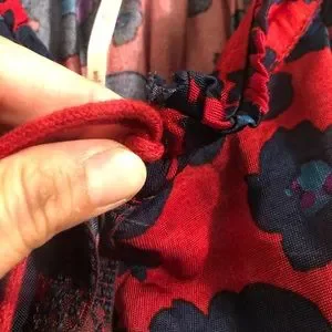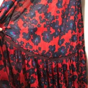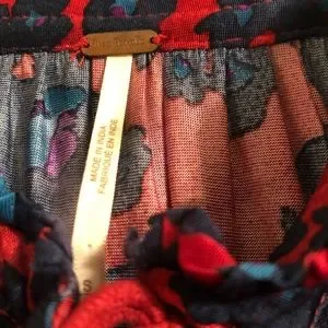 100%viscose very distinctive free people, great condition except for minor imperfection left side neck, difficult to notice it.