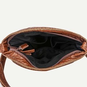Rust Brown Vegan Leather Zipper Crossbody Bag