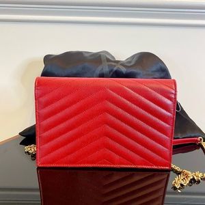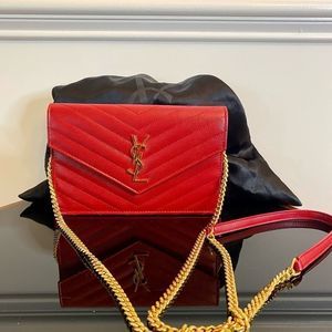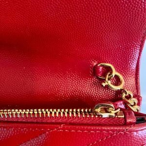 YSL Yves Saint Laurent Red Wallet on a Chain with gold hardware