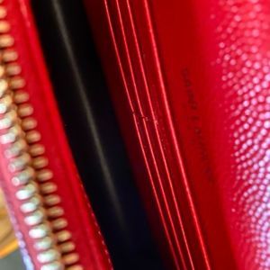 AUTHENTIC YSL Yves Saint Laurent Red Wallet on a Chain with gold hardware