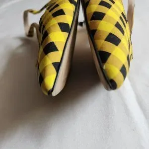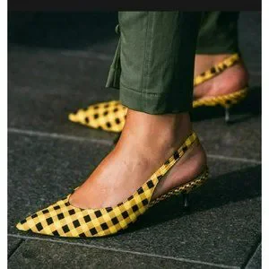 ZARA BASIC Collection Women's Yellow/Black Gingham Slingback Pointed Toe Sandals Size 39