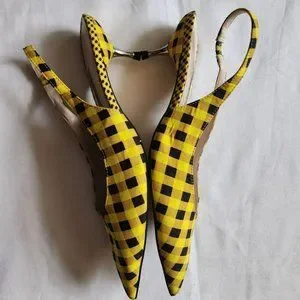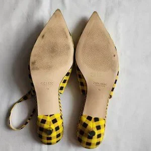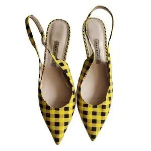 ZARA Women's Yellow/Black Gingham Slingback Pointed Toe Sandals Size 39