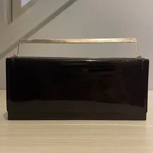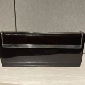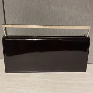 Calvin Klein clutch bag can be worn two ways simply as a clutch or with a silver piece to carry, in patent leather, deep burgundy color. A Beautiful bag gently used.