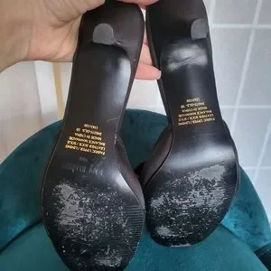 Vintage Victoria's Secret Black Satin Slippers Heels 10