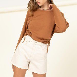 RELISTED Brown Sugar Long Sleeve Ruched Side Sweatshirt Top Sweater