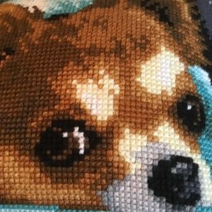 Handmade Yarn Cross Stitched Chihuahua Face Pillow