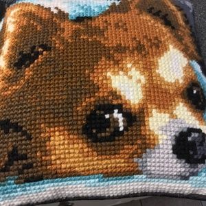 Preowned Handmade Yarn Cross Stitched Chihuahua Face Pillow. EUC. Measures 15 x 15. Handmade with baby blue, teal, brown, black, tan, cream, gray and white yarn on front and a nice thick black floral pattern fabric on back. Such a unique sweet face and the perfect home accent piece or gift for any Chihuahua lover! No rips tears or stains. From NS home. See pics for details. Reasonable offers always considered.