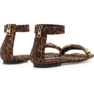 🍋 GOOD AMERICAN PALE LEOPARD Ankle Strap Flat Sandal.