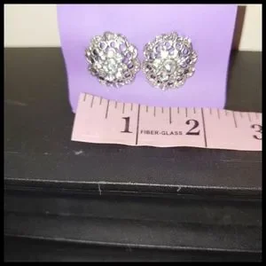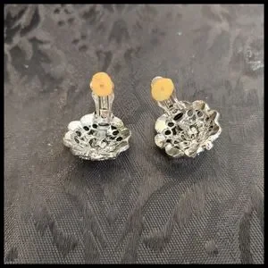 Vintage Bold Rhinestone Earrings Good used condition. The second photo was taken without a flash to show the metal better.