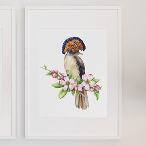 Flycatcher Bird Wall Art Watercolor Illustration Print Poster Card Unframed
