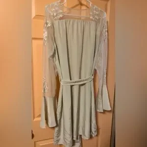 Size XL (US 12/14). Featuring floral embroidered illusion sleeves with a romantic bell cuff.