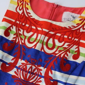 Anthropologie Tabitha Dress bright multi color stripes embroidered Sz 4
