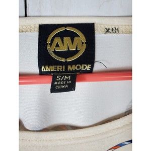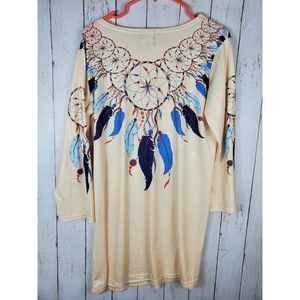 Ameri Mode Women's Dreamcatcher Printed Long Tunic Blouse Size S/M Beige Blue.