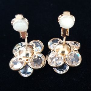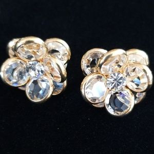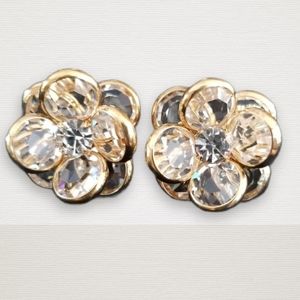 Vintage Austrian Crystal Flower Gold Tone Clip On Earrings