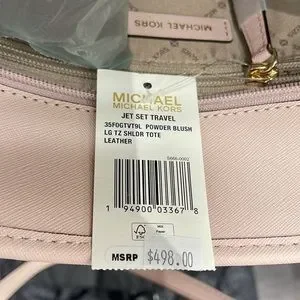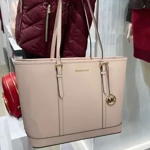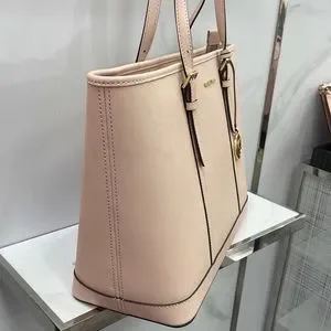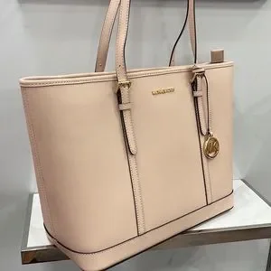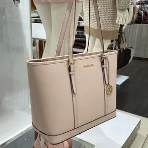 MICHAEL KORS Jet Set Travel Lg Top Zip Shoulder Tote Saffiano Leather Pwdr Blush