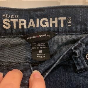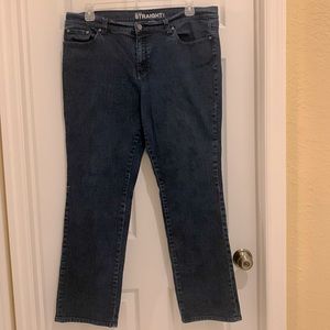 Mid rise straight leg. Excellent used condition. No rips, stains, or holes. Rise is 11”, waist is 19 1/4”, inseam is 31”.