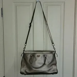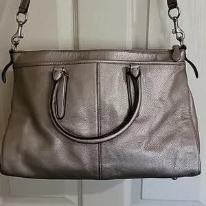 The interior has a zipper pocket, a large open area for your wallet, and two additional pockets for a cellphone, and that all important lipstick. Has double handels and cross body strap.