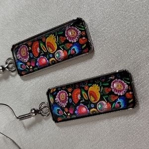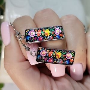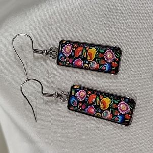 Polish Folk Art Cabochon Style Drop Earrings
