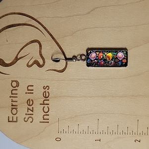 Colorful Polish Folk Art design under cabochon style glass on hypoallergenic wires.