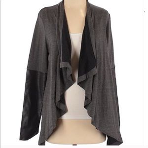 ANTHRO Bordeaux Grey Black Leather Draped Cardigan