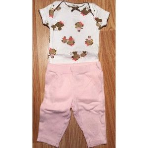 Girl's Size NB Newborn Two Piece Carter's White/ Brown Monkey Top & Pink Pants