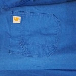 Here is a Carhartt Solid Ripstop Utility Blue Short Sleeve Scrub Top Size Large C15108. It is in good condition with the exception of some Wear, but has lots of life left. The length from the Shoulder to the Hem is approximately 27 inches and the armpit to armpit is approximately 23 inches.