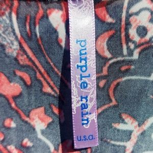 This lightweight stretchy dress has a beautiful black and grey animal print spots on a white background with red floral patterns. It is midlength with slightly flared sleeves. Smoke free home.