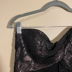The first 2 pictures aren't mine! The ones with gold, but same dress! I thought they show the detail at the top very well! The last picture is the same shape -- but of course plain black silk.