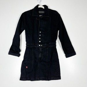 GRLFRND Womens Black Margo Denim Dress Button Distressed Stretch Dress Sz Small