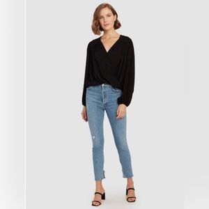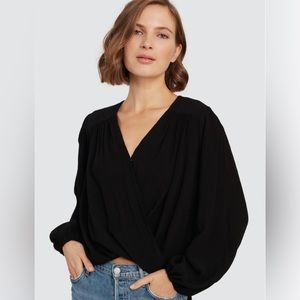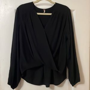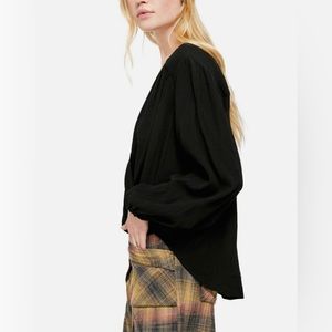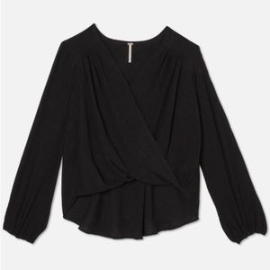 NWOT Free People Check On It Wrap Drapy Top in Black,Hook-and-eye front closure - Relaxed fit - All-over pleated construction - Cinched sleeves with elasticated cuff MATERIALS 81% viscose, 19% nylon